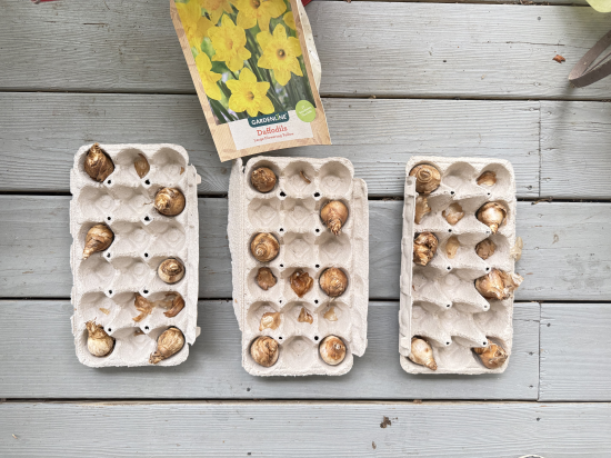 ~ Here's a great tip I found on FaceBook: the easiest way to plant a ton of bulbs at once using egg cartons!